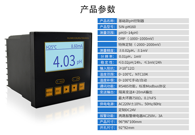 SIN-pH160是工業(yè)pH計,是工業(yè)酸度計的智能化升級產品,可對污水pH值進行連續(xù)測量和控制。