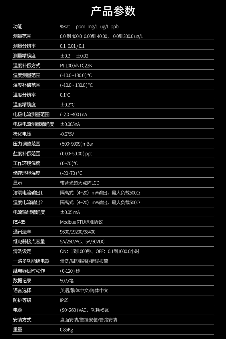 聯(lián)測儀表SIN-DO8.0膜法溶氧儀儀器用于工業(yè)上溶氧%/ppm/mgL/ugL/ppb 及溫度的測量,如:發(fā)酵,飲用水,鍋爐水,海水,養(yǎng)殖,水族館,地表水,工業(yè)污水,都市廢水,環(huán)境監(jiān)測,食品生產(chǎn)過程等,儀器可以盤面安裝,壁掛安裝,管路安裝,儀器提供 2 路電流輸出,最大負(fù)載為 500Ω,儀器提供 3 路控制用繼電器,繼電器最大承受電壓及電流為 5A/250VAC 或 5A/30VDC。