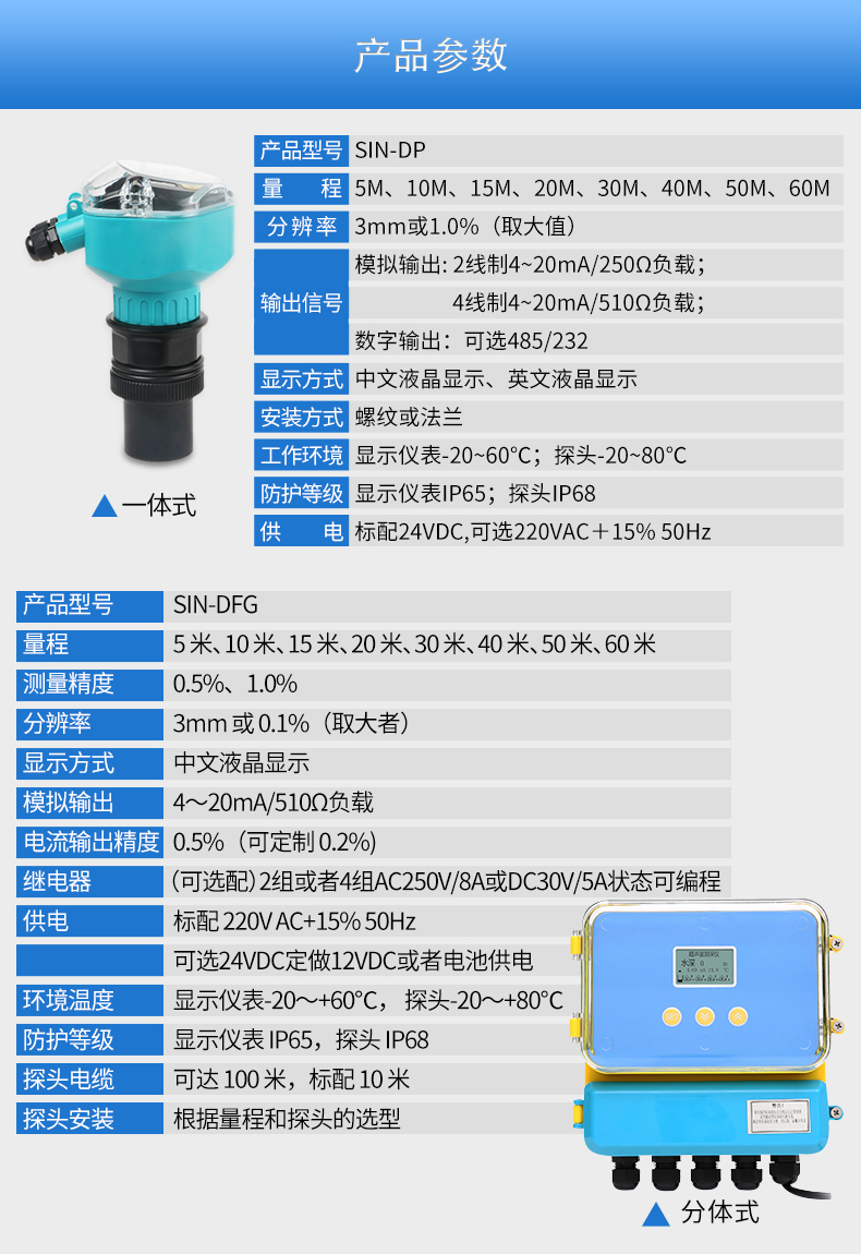 聯測儀表SIN-DFG基礎款分體式超聲波液位計/物位計/水位儀