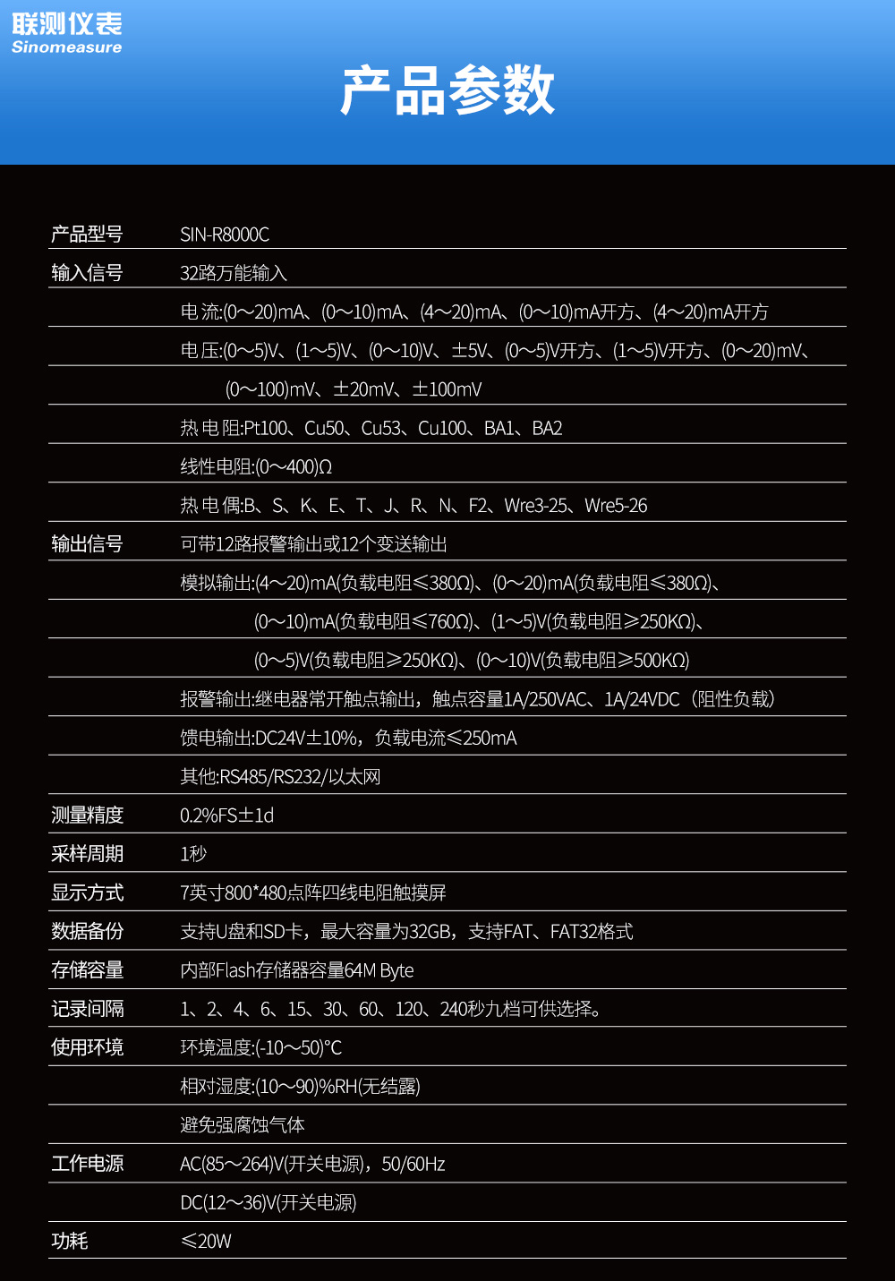 聯(lián)測儀表SIN-R8000C可帶12路報警輸出或12個變送輸出,RS232/485通訊接口,以太網(wǎng)接口,微型打印機接口和USB接口,SD卡插座;可提供傳感器配電;采用拔插式間距為5.08的接線端子,方便電氣連接;具有強大的顯示功能,實時曲線顯示,歷史曲線追憶,棒圖顯示等。人性化的外觀設(shè)計、完美的功能體現(xiàn)、可靠的硬件品質(zhì)、精湛的制造工藝,使本產(chǎn)品具有更高的性能價格比。