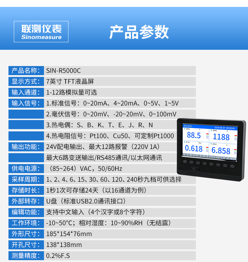 應用行業 聯測儀表SIN-R200T無紙記錄儀可輸入電流、電壓、熱電偶、熱電阻和頻率等工業信號。