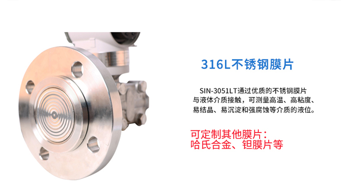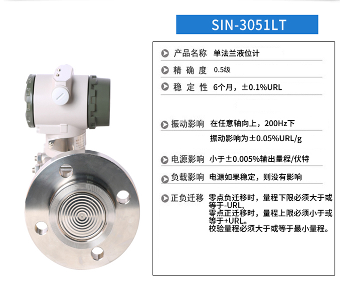 SIN-3051LT型單法蘭差壓液位變送器是我公司引進國外先進技術和設備生產的新型變送器,關鍵原材料,元器件和零部件均源自進口,整機經過嚴格組裝和測試。