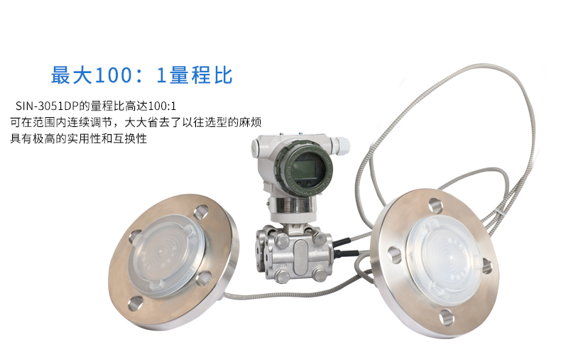 SIN-3051DP雙法蘭差壓液位變送器是一種為避免被測介質直接作用于變送器的遠傳隔離膜片接觸而采用的差壓式變送器(結構測量法)。