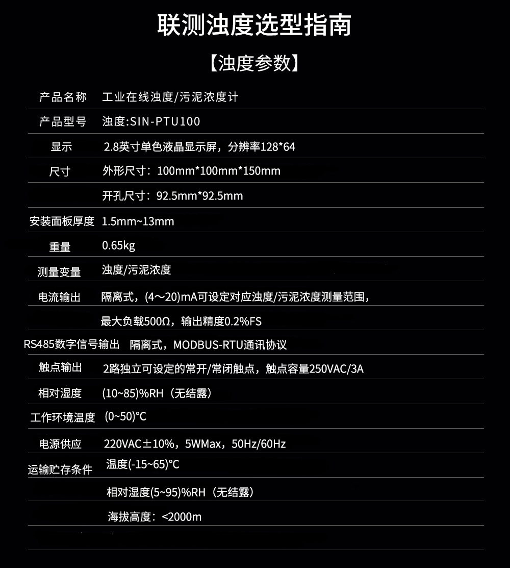 聯(lián)測SIN-PTU100在線濁度分析儀內(nèi)置微處理器,適用于于污水廠、自來水廠、水站、地表水、工業(yè)等領(lǐng)域濁度監(jiān)測,例如:污水廠沉淀池、造紙漿液池、提升泵站、氧化溝濁度測量等。